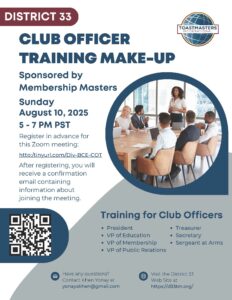 Notice: Information, photos, and all other materials posted are for the sole use of Toastmasters’ members, for Toastmasters business only. It is not to be used for solicitation or distribution of non-Toastmasters material or information. All rights reserved. Toastmasters International, the Toastmasters International logo, and all other Toastmasters International trademarks and copyrights are the sole property of Toastmasters International and may be used only by permission.